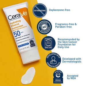 CeraVe Hydrating Mineral Sunscreen SPF 50 | 100 ML - CeraVe Hydrating SunBlock | Broad Spectrum SPF 50